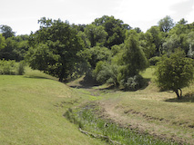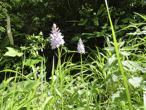 The Stepping Stones pub in Westhumble provided the lunch needed as fuel for the walk around the Surrey Hills. The food was perhaps slightly overpriced, but the quality was adequate and the service was acceptable. The walk passed close to the quaintly named Box Hill and Westhumble Station opened in 1867 and then alongside the rail track into fields bordering the River Mole. For geography enthusiasts there's a good example of a cut off meander, or dry oxbow lake alongside the . river. After a stroll through quiet lanes the walk turns uphill on a narrow path that eventually emerges on to woodland track. Ancient yew trees occasionally appear amongst the beeches, and after exiting the wood a large lebanon cedar can be seen, part of the Norbury Park arboretum. A further climb uphill was marred by a new high fence surrounding, and obscuring, the 1774 manor house. Nevertheless, a break from the climb was rewarded by the sight of several flowering orchids. There were some splendid views across the valley as the walk headed back towards Westhumble, and on the descent into the village the 13th century ruins of the flint-built chapel added history to this idyll so close to London.