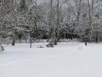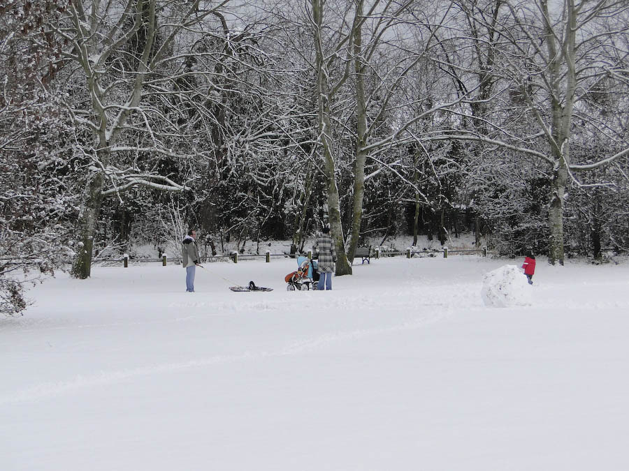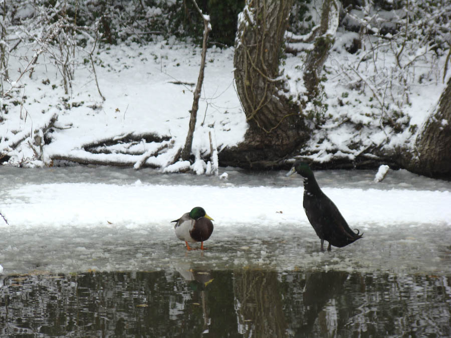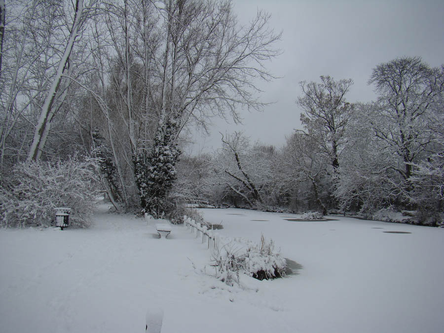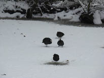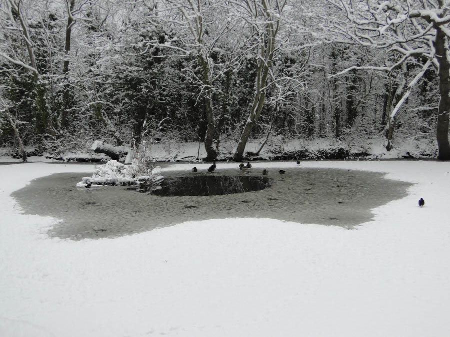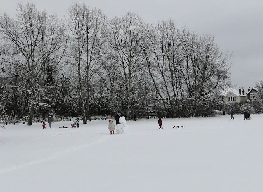 The weather turned wintery again on Saturday morning. Snow fell quickly and settled to about 10 cm depth in the South London area. Here are a few scenes from Cannon Hill Common.